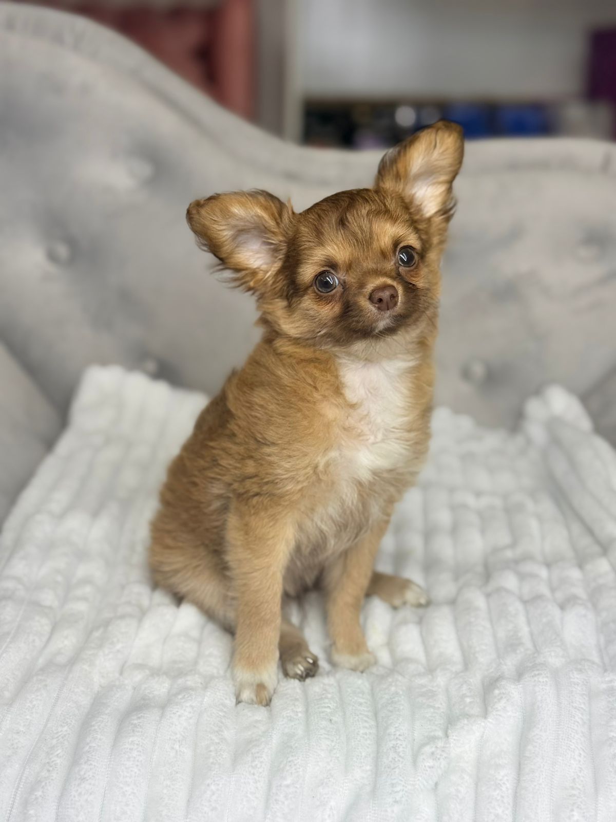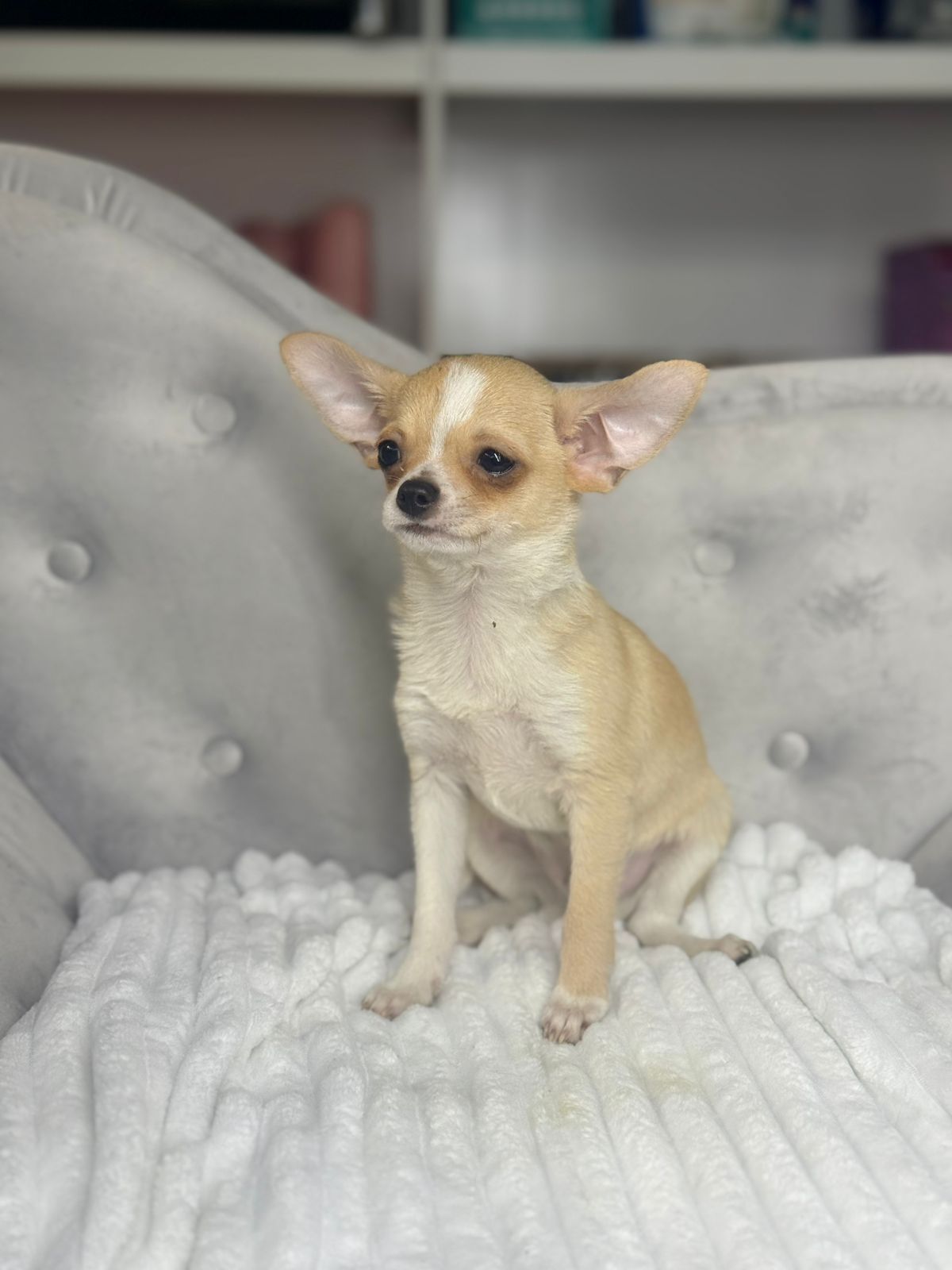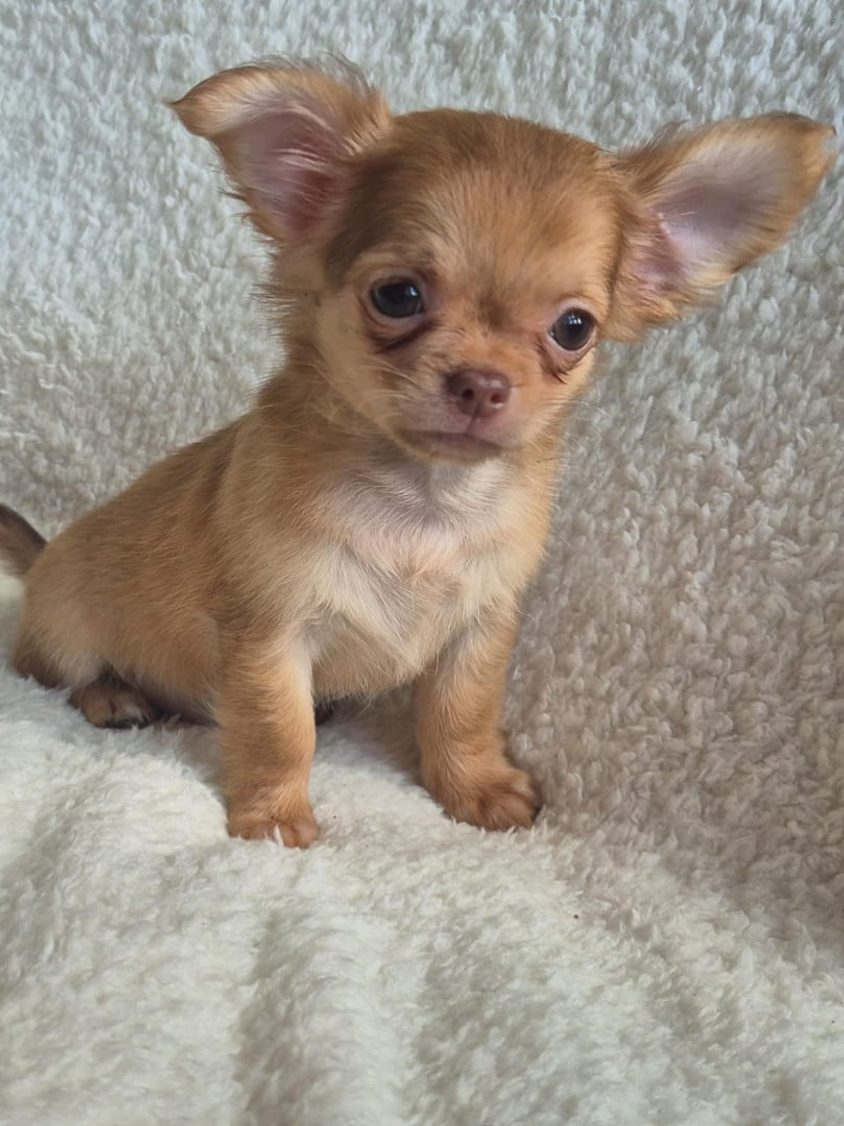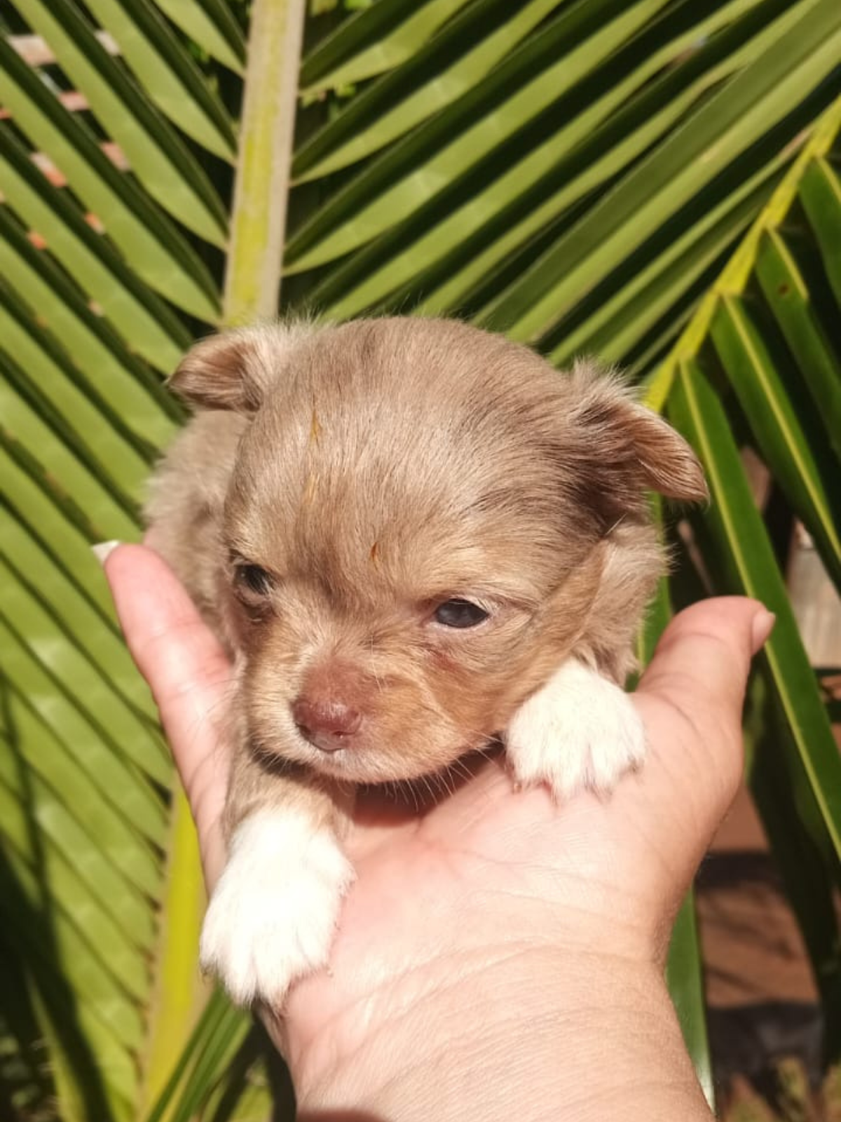 Aparência Distinta: Com seus olhos expressivos e orelhas grandes e eretas, o Chihuahua possui uma aparência distinta que conquista corações em todo o mundo. Sua pelagem pode variar em comprimento e cor, desde curta e lisa até longa e sedosa, em uma ampla gama de tonalidades. Seu corpo é compacto e bem proporcionado, transmitindo uma sensação de elegância e agilidade.