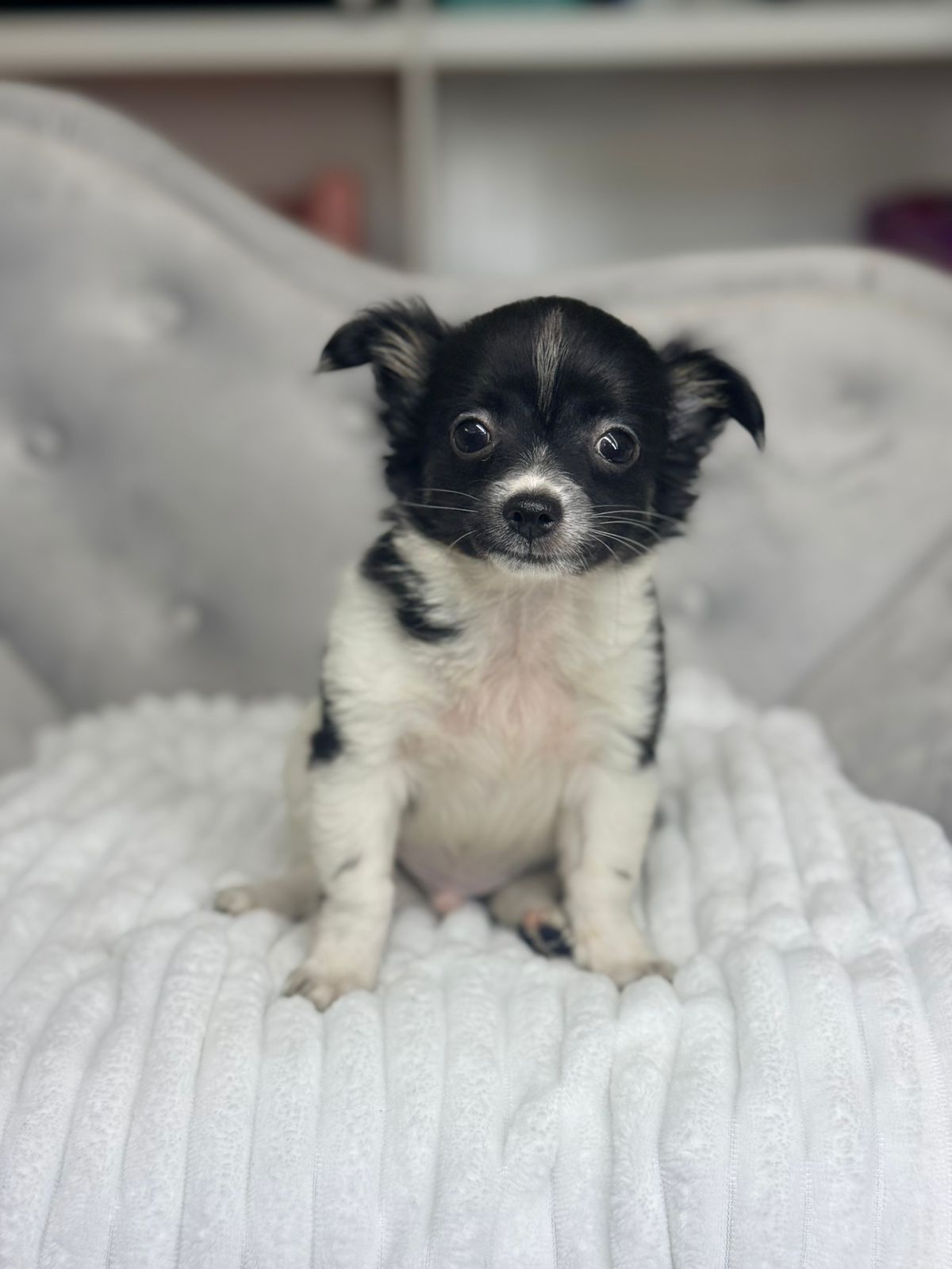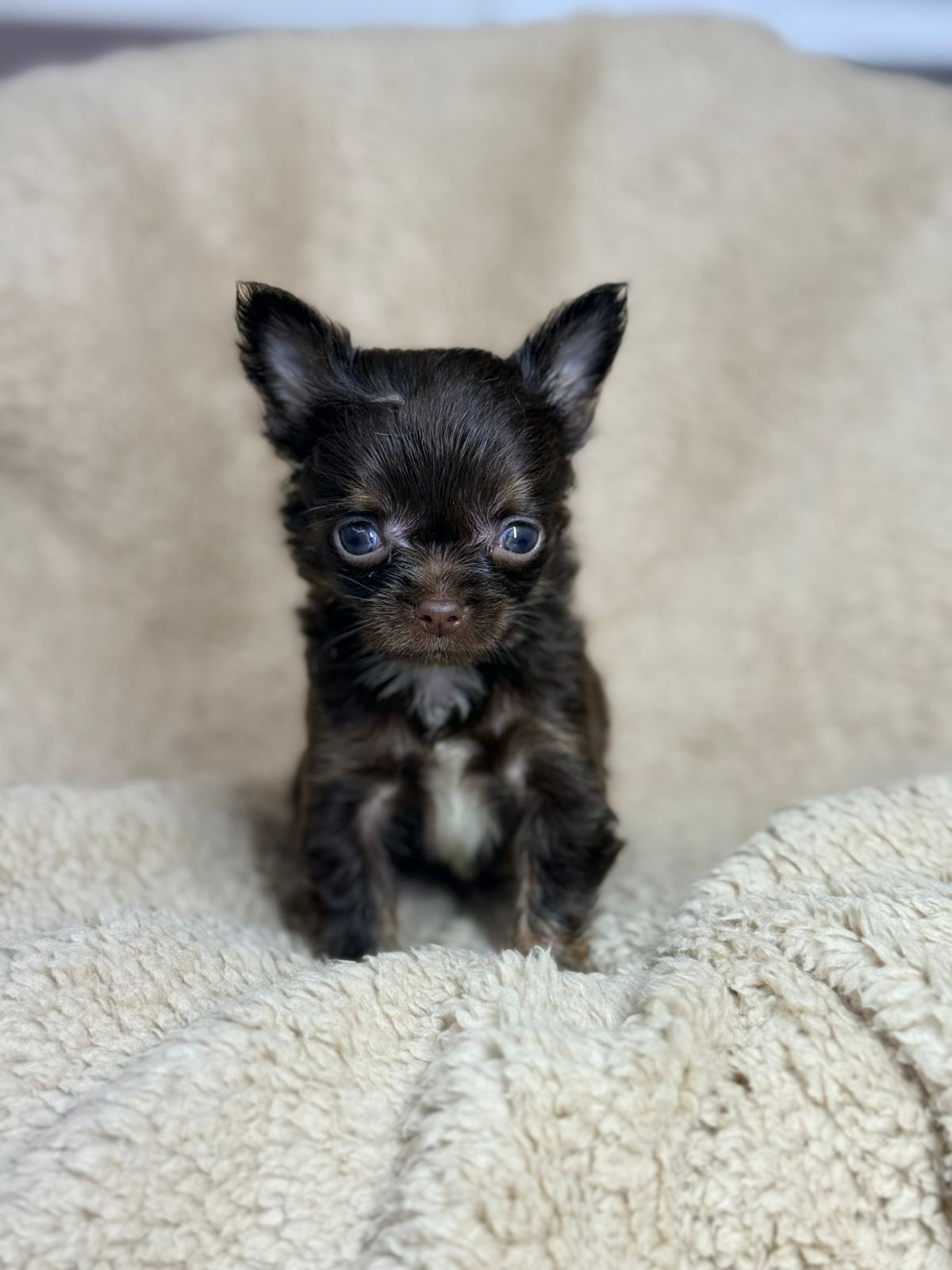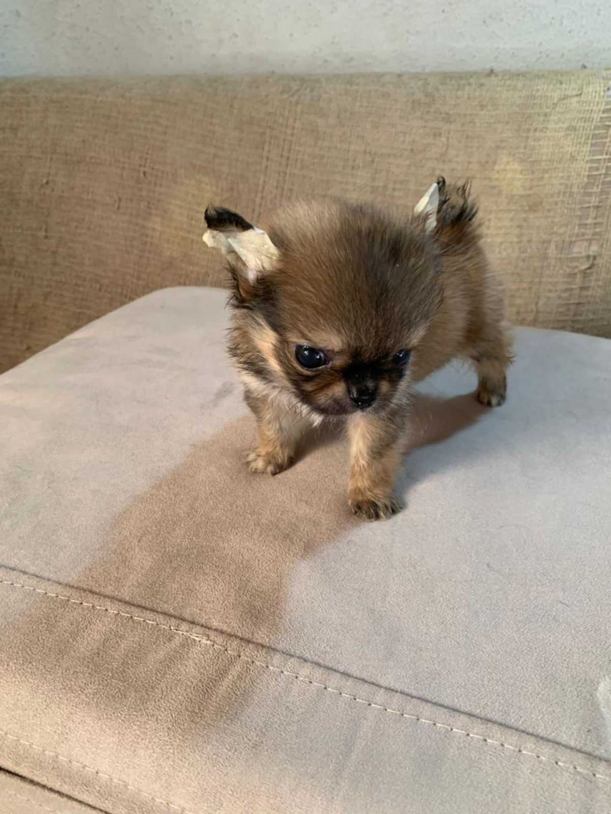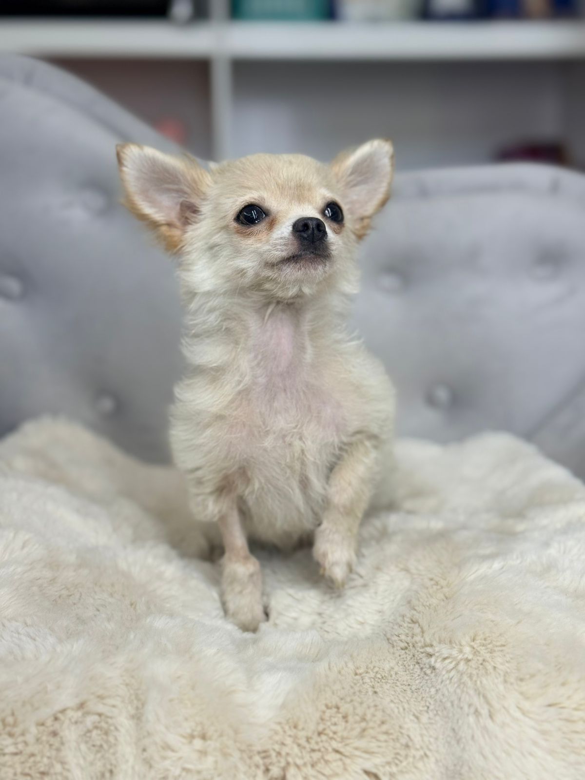 Aparência Distinta: Com seus olhos expressivos e orelhas grandes e eretas, o Chihuahua possui uma aparência distinta que conquista corações em todo o mundo. Sua pelagem pode variar em comprimento e cor, desde curta e lisa até longa e sedosa, em uma ampla gama de tonalidades. Seu corpo é compacto e bem proporcionado, transmitindo uma sensação de elegância e agilidade.