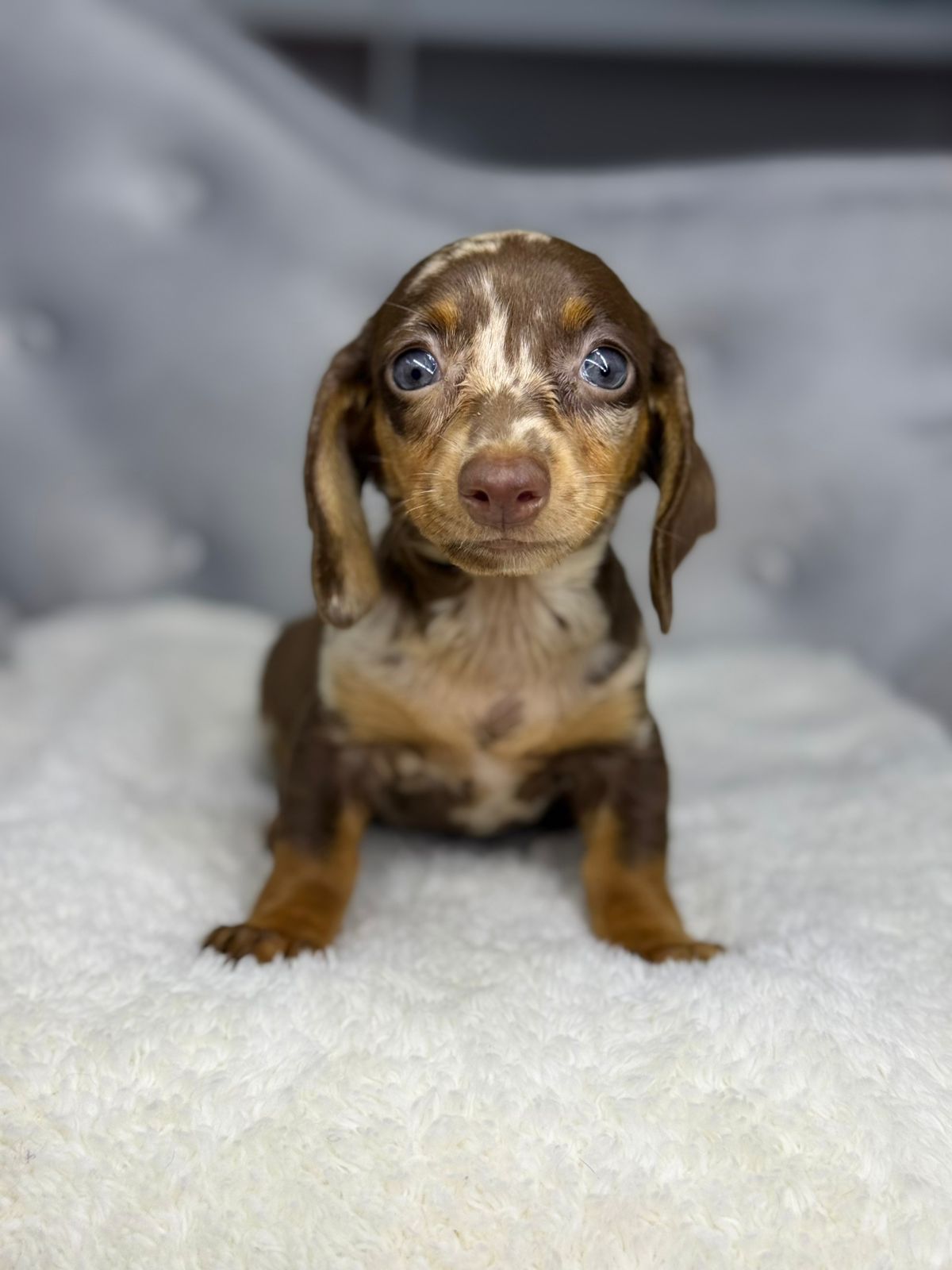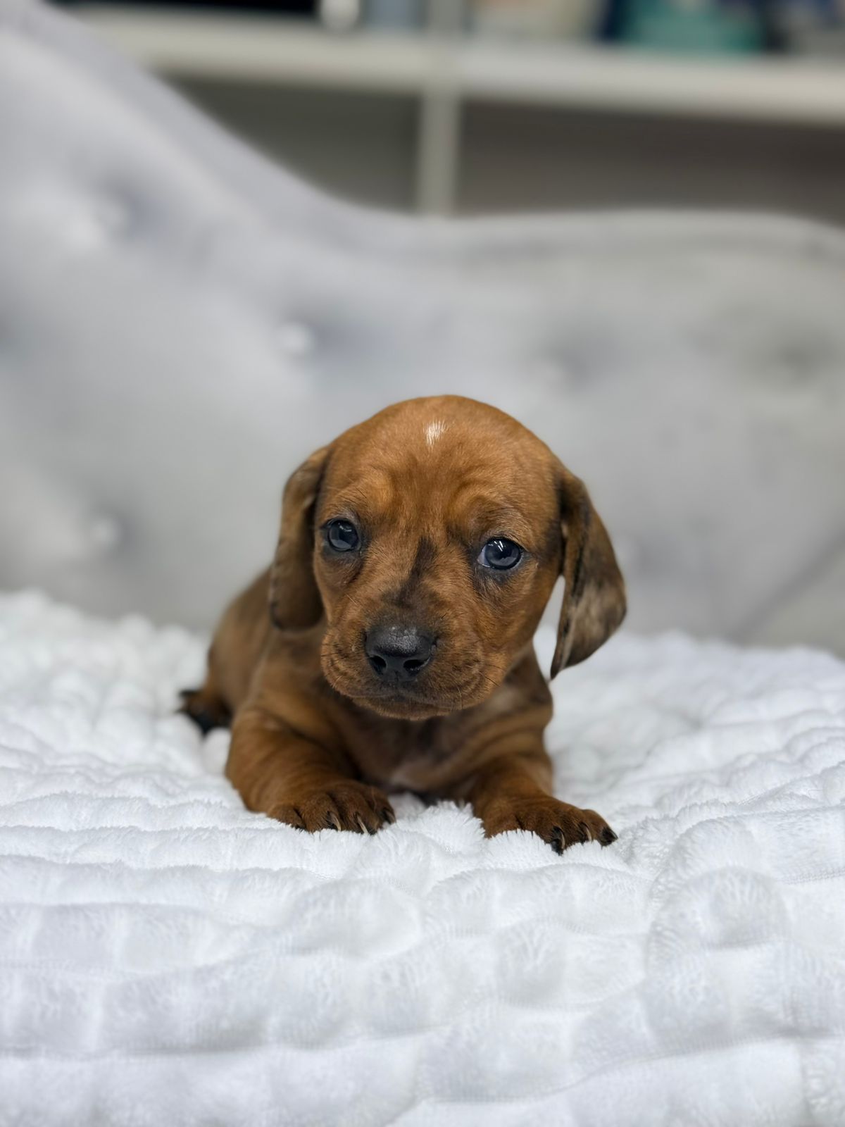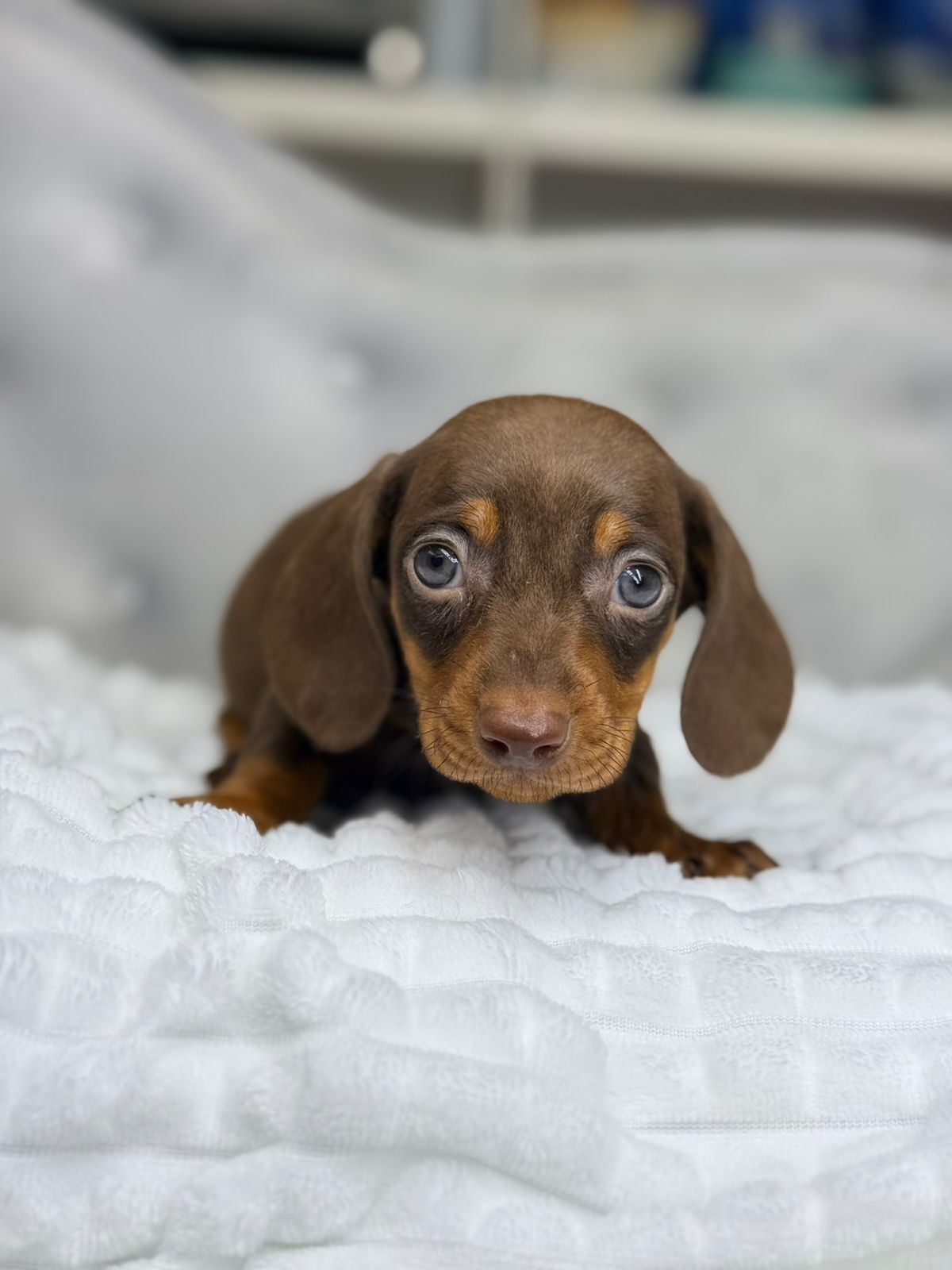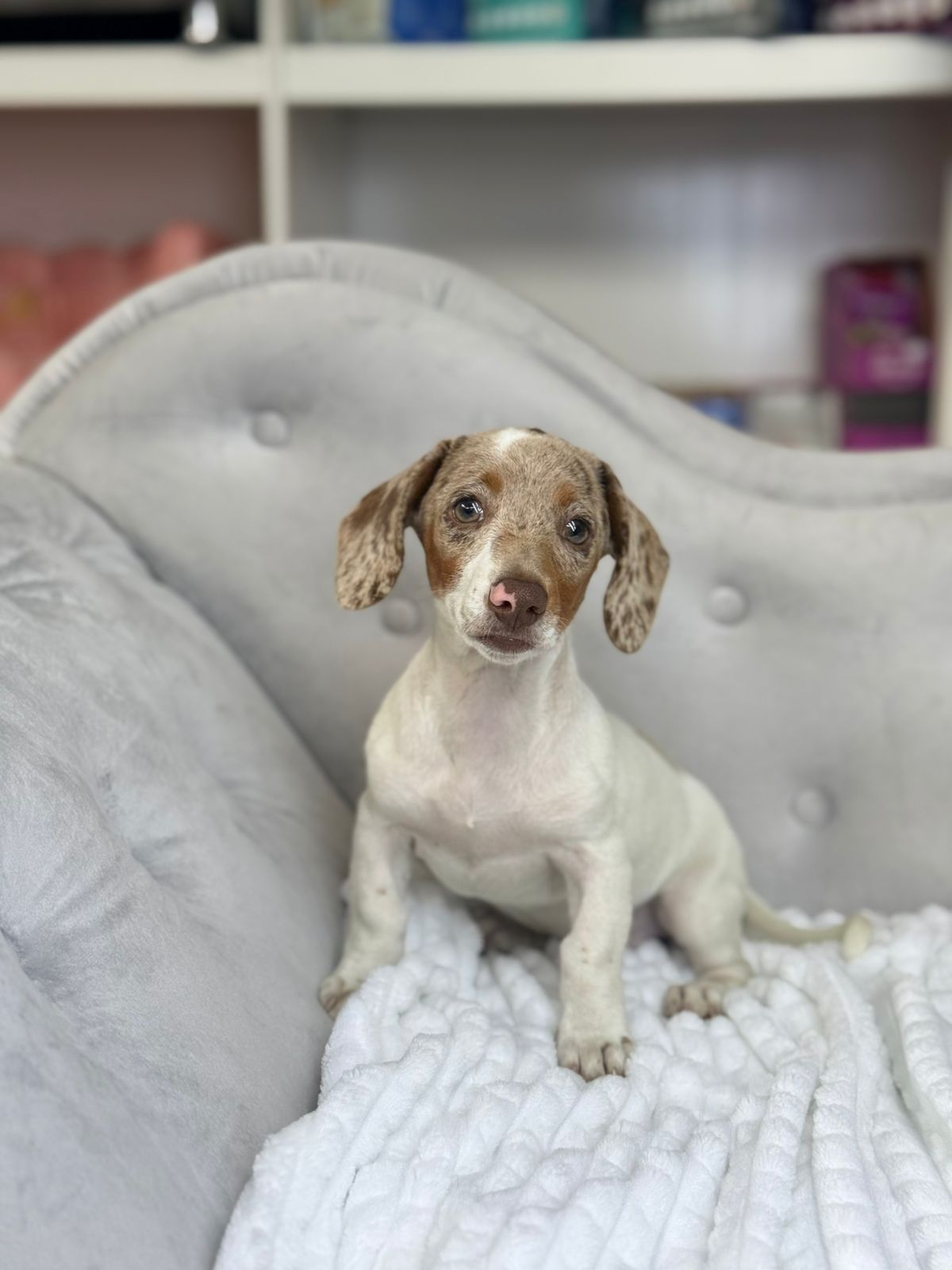 Aparência Peculiar: O Dachshund, também conhecido como “cachorro salsicha”, é reconhecido por seu corpo alongado e pernas curtas. Sua forma física única e expressão facial adorável fazem dele uma raça inconfundível. Disponível em diferentes variações de pelagem, incluindo pêlo curto, longo e arame, o Dachshund cativa com sua diversidade de cores e padrões.